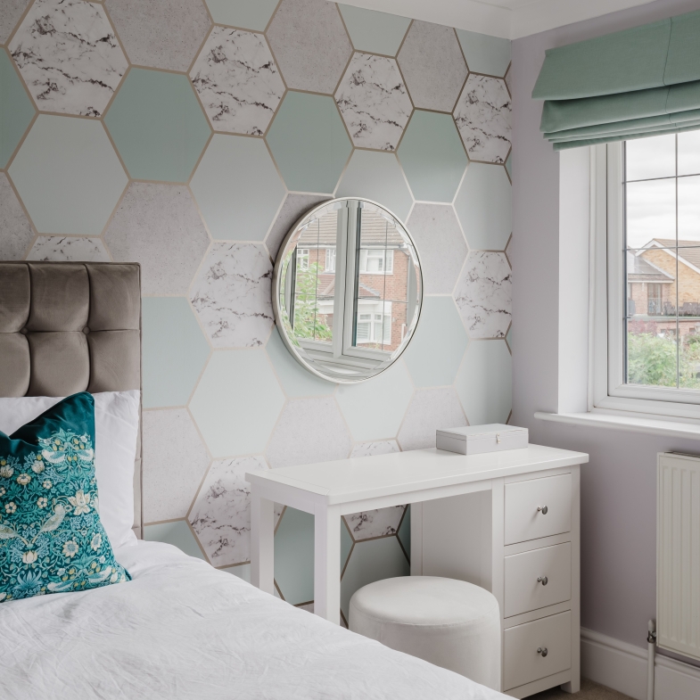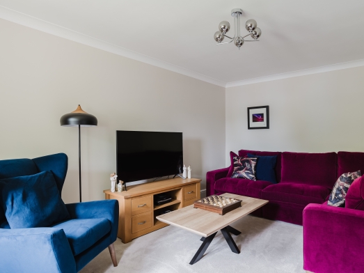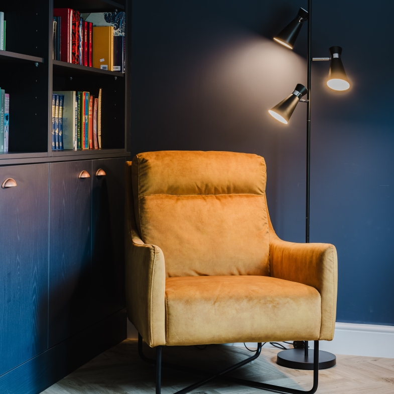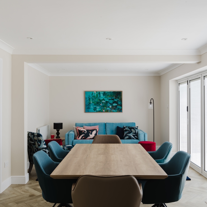 Holly worked on every element of the majority of their home - this included three bedrooms, snug room, open plan kitchen, living & dining and a study and selected the colour scheme, window treatments, upholstered, dining and bedroom furniture, lighting and accessories to create a bright and vibrant home that they could enjoy quality time with their friends and family.