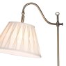 The Suffolk height adjustable 1lt Rise & Fall Floor Lamp is finished in antique brass, has a cream faux silk pinch pleat tapered directional shade, and is foot switched. Bulb not included