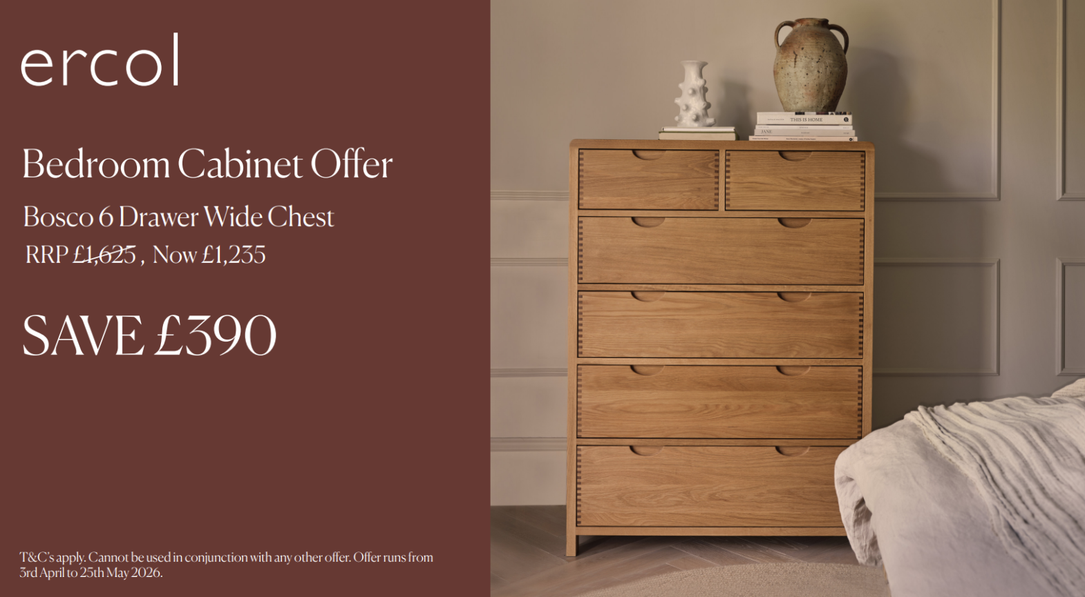 Ercol Bosco Bedroom6 Drawer Tall Wide Chest
