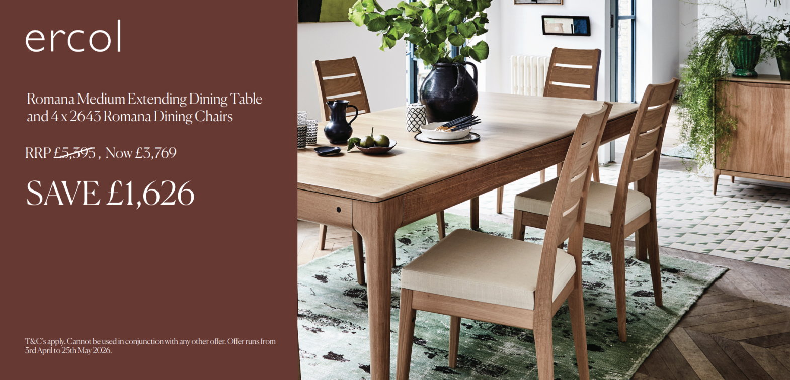 The Ercol Romana collection showcases beautifully crafted furniture made from solid oak, offering a warm, natural look with timeless appeal. Known for its flowing lines, distinctive curves and elegant detailing, the Romana range highlights Ercol’s expert craftsmanship and thoughtful design approach. Each piece is carefully made to balance visual elegance with everyday practicality, creating furniture that feels refined yet functional. With its solid oak construction and enduring style, the Ercol Romana collection is ideal for those seeking high-quality furniture designed to stand the test of time.