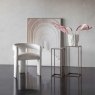 A sculptural base with a radiused edged top gives this piece a unique silhouette within our occasional offer. The contrasting elements of our striking white ceramic top against the black base lift the elegant contemporary design.